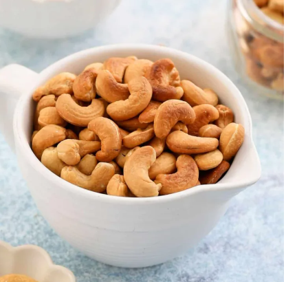 cashews are high in calories. 100 g of nuts provide 553 calories. They packed with soluble dietary fiber, vitamins, minerals and numerous health-promoting phytochemicals that help protect from diseases and cancers.